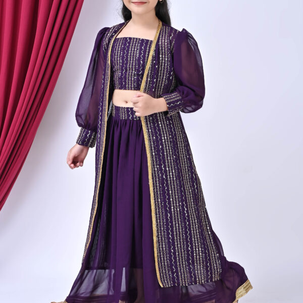 SPAMitude Girls Premium Georgette Clothing Set(Purple)