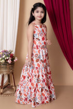 Self Designed Premium Cotton Printed Long Dress, has a boat Neck, Sleeveless. SPAMitude add colors to the apparel collection of your daughter with this all type party wears,frock dresses from the house of SPAM FASHION. Crafted from soft fabric, it comes with maximum comfort and confidence that she will make it an everyday choice.