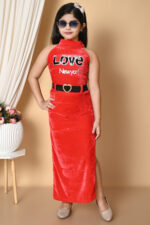 Be the first to review “Girls Velvet Long Bodycon Dress(Red)”